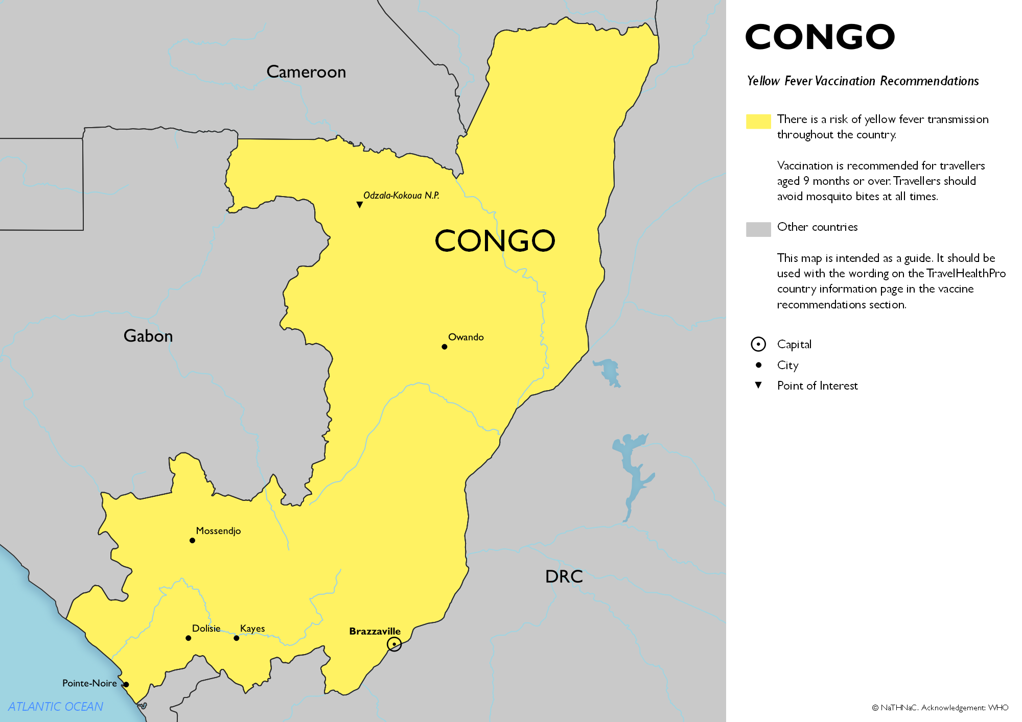Yellow fever vaccine recommendation map for Congo